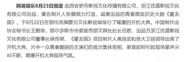 这部待播的剧实际上拍摄于2016年,扮演霍去病的是一向路人缘不错的张若昀,张若昀的父亲张健则是本剧的编剧兼导演。这部原本除了粉丝没什么人关注的电视剧因为前几天发布的片花被推入了大众视野,92集的长度引来了一片吐槽,要知道,霍去病的一生也才走过了短短23年啊!