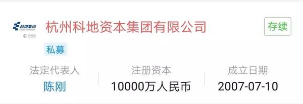 如上图所示,信能润邦的股东中,有一家杭州科地资本集团有限公司(以下简称科地),公司的法人名叫陈刚。
