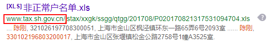 上图红框中的网站是上海市税务局,这是他们2017年公布的非正常户名单,同一个陈刚出现在这个表里,下载表单看一下完整信息: