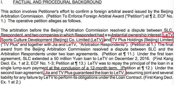 可是,这笔钱乐视控股和贾跃亭一直没有偿还,所以才向加州中区法院申请仲裁,希望能够在美国执行中国国际经济贸易仲裁委员会裁决。但这起仲裁案尚未开庭审理。