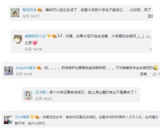 这个问题一下戳痛了不少大学生,这些人承认自己并没有“独立生活”,还是靠父母供养。一边上学一边兼职赚钱,也并不现实。