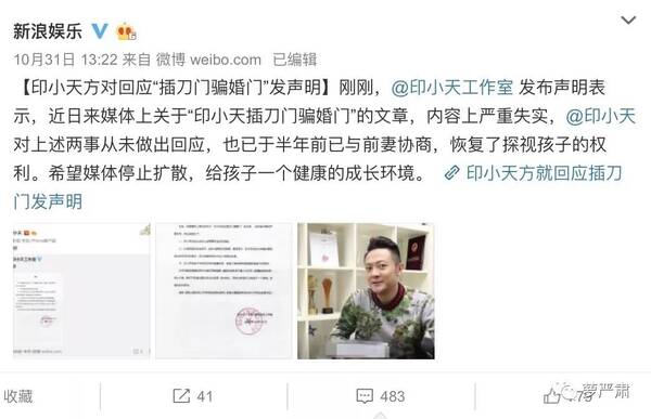 既然和解了就该翻篇了,印小天曾发声明表示自己从未回应骗婚门和插刀门。