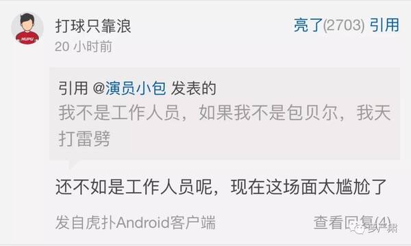 所以就有一种很奇特的感受,前面包贝尔被别人吐槽的时候,看起来特别特别特别真实——不是好笑,就是觉得,这个发言没错啊。
