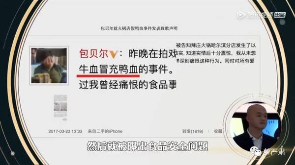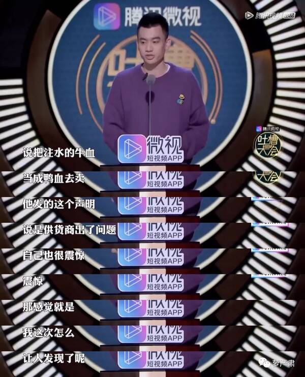 他又说牛血冒充鸭血是自己当演员太忙了,以后一定会把时间放在看管鸭子上给鸭子挨个放血。