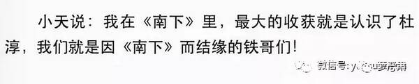 印小天跟记者说,拍电视剧《南下》最大收获就是认识了杜淳,认为自己和杜淳是铁哥们。