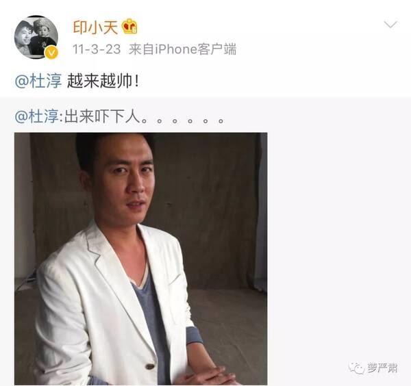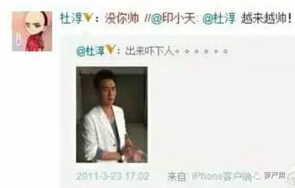 尤其是印小天对杜淳还特别热情,他给杜淳发的微博到现在都没删。