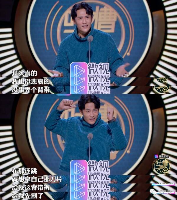 但我真的想问,杜淳下面这段,团队审台本的时候过脑子了吗?他公然吐槽自己代言过的品牌土诶,还说什么拎着背带在那儿跳,自己想把背带割了。